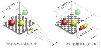 - projection transformation(投影变换?):此变换会投影相机空间(camera space)中的点,使得所有可见点落入x和y,范围在-1至1之间。矩阵取决于投影类型