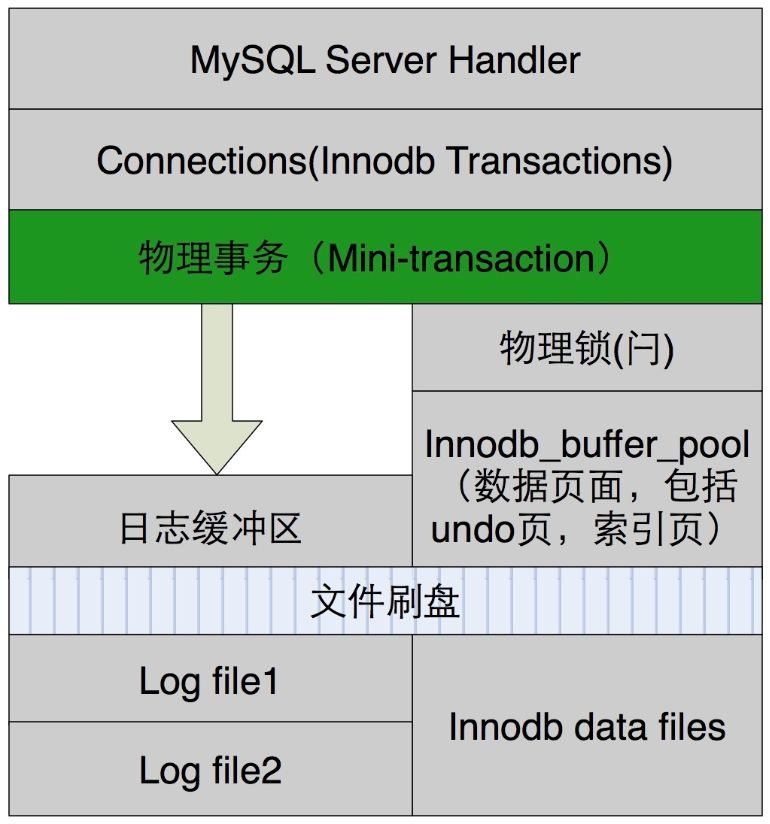 对于逻辑事务,熟悉数据库的人都很清楚,它是数据库区别于文件系统最重要的特性之一,它具有 ACID 四个特性,用来保证数据库的完整性——要么都做修改,要么什么都不做。物理事务从名字来看,是物理的,因为在 InnoDB 存储引擎中,只要是涉及文件修改、文件读取等物理操作的,都离不开这个物理事务,可以说物理事务是 Buffer Pool 中的内存 Page 与文件之间的一个桥梁。