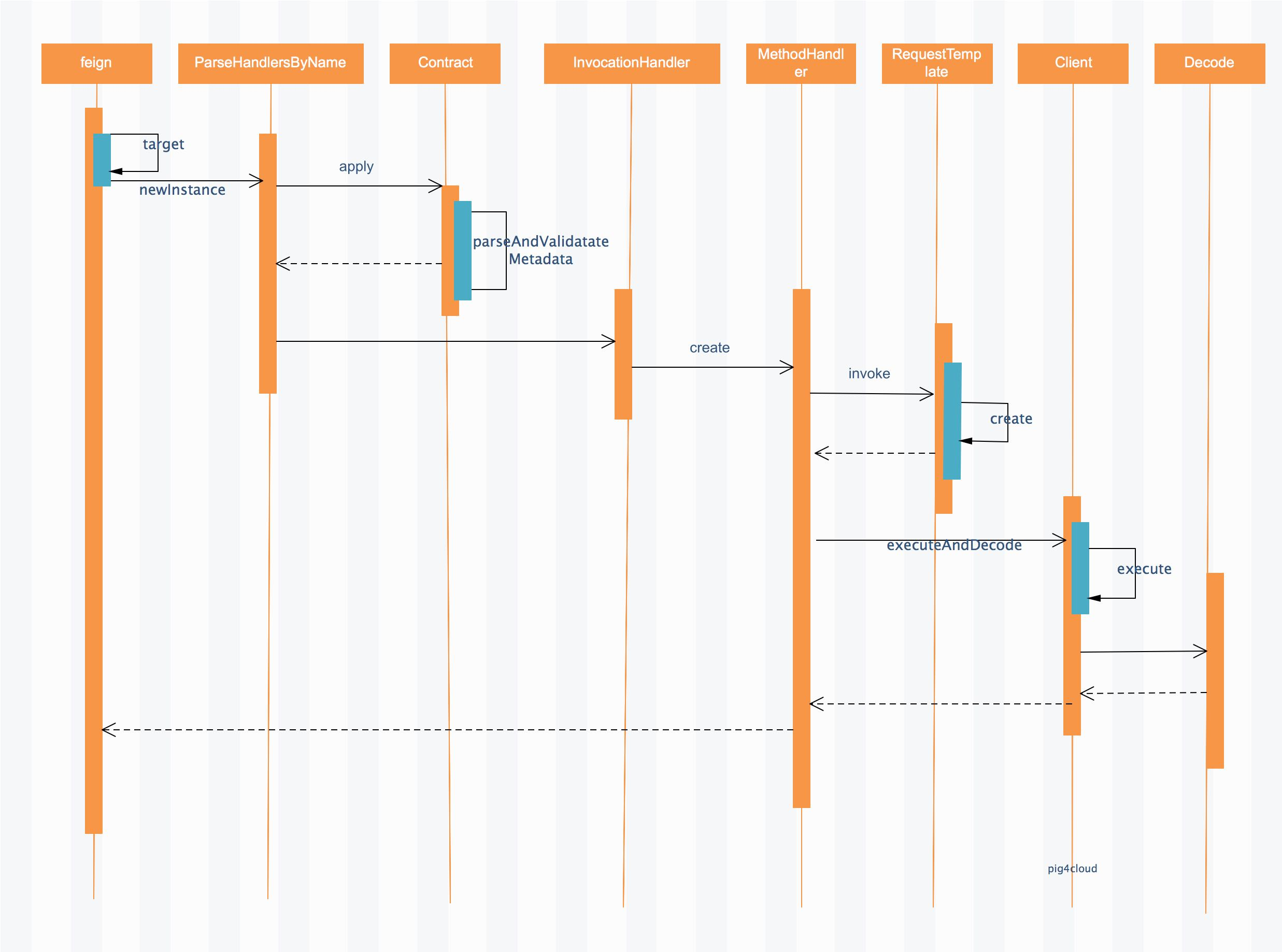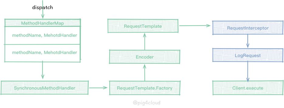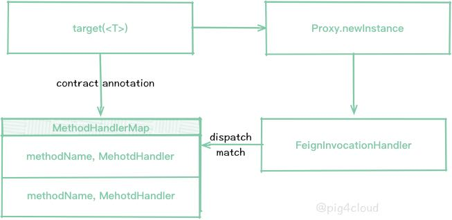 未引入 feign-hystrix 则还是上文的流程就同最初的流程一致 , 我们在调用 feignclient.method 会触发动态代理,执行 MethodHandler 的逻辑