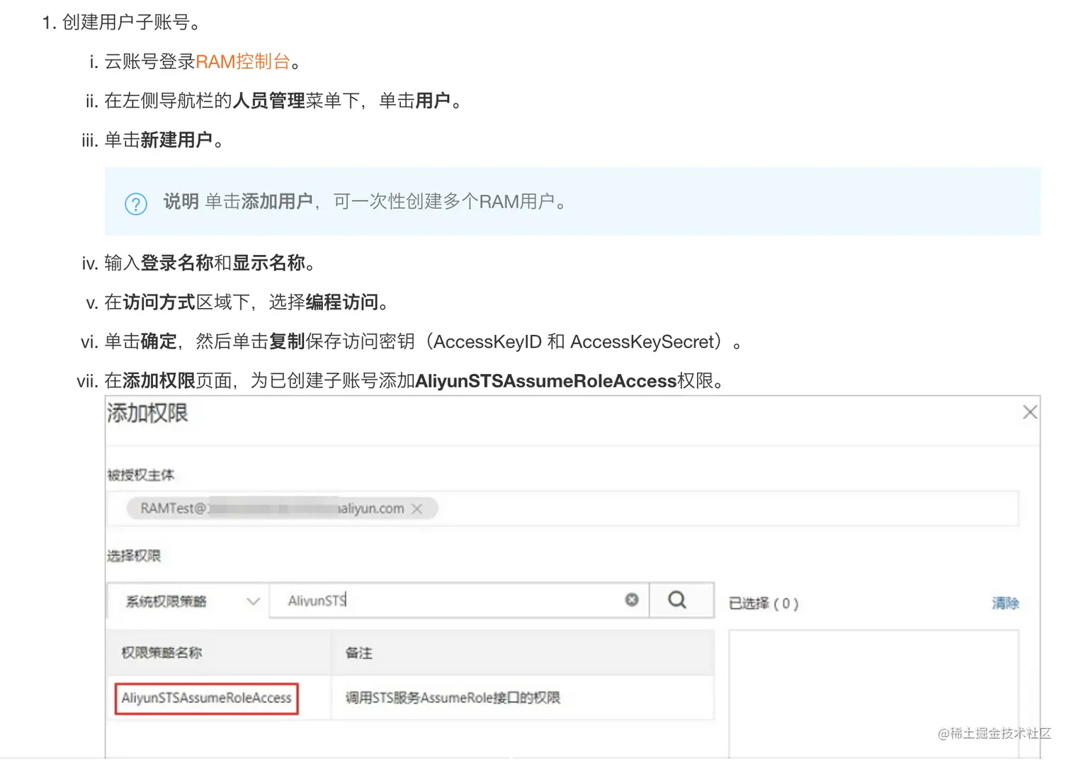1.首先,我们得创建一个用户,并赋予他STS的权限。旁白:毕竟是要使用token那用户首先得有使用token的能力