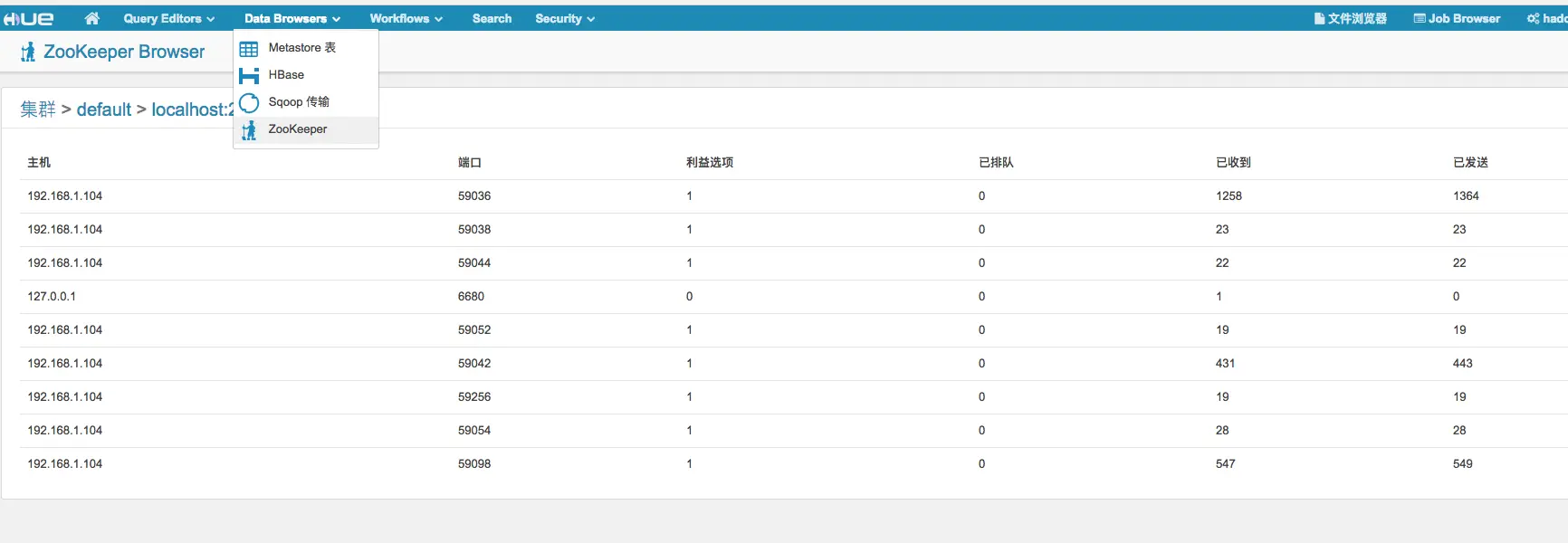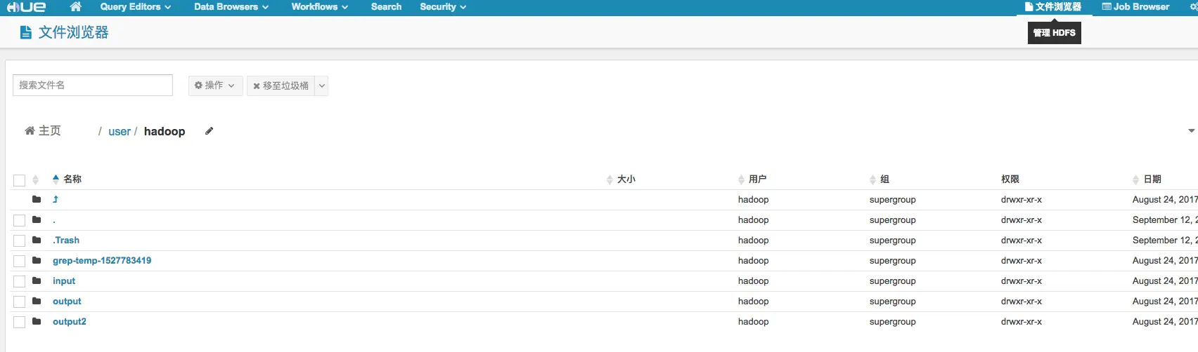 在各种各样的组件下HUE无疑是最好的web工具的选择,HUE还有很多其他的功能包括我们后面要说到的spark,sqoop等相关的组件都可以通过HUE进行在线管理.