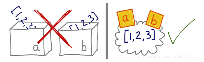如果把变量想象为盒子, 那么无法解释 Python 中的赋值;应该把变量视作便利贴, 这样就好解释了。先 生成变量,才把便利贴贴上。