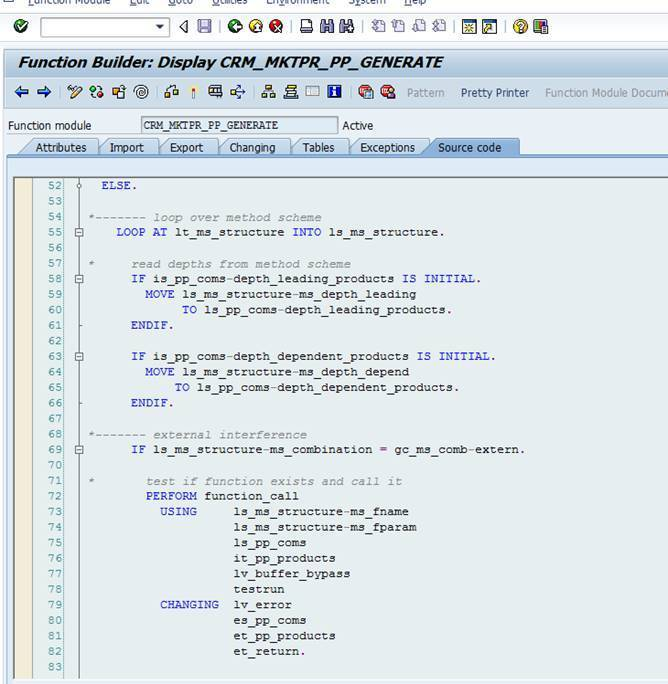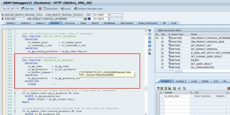 UI Component: BT115IT_SLSO View: BT115IT_SLSO/Items Trigger event: eh_onpp_listings Call stack 21: trigger event en_onpp_listings Call stack 30: CRM_PRODUCT_PROPOSAL_DETERMINE is key function first, function CRM_MKTPR_PP_GENERATE is the funtion to get product id list.