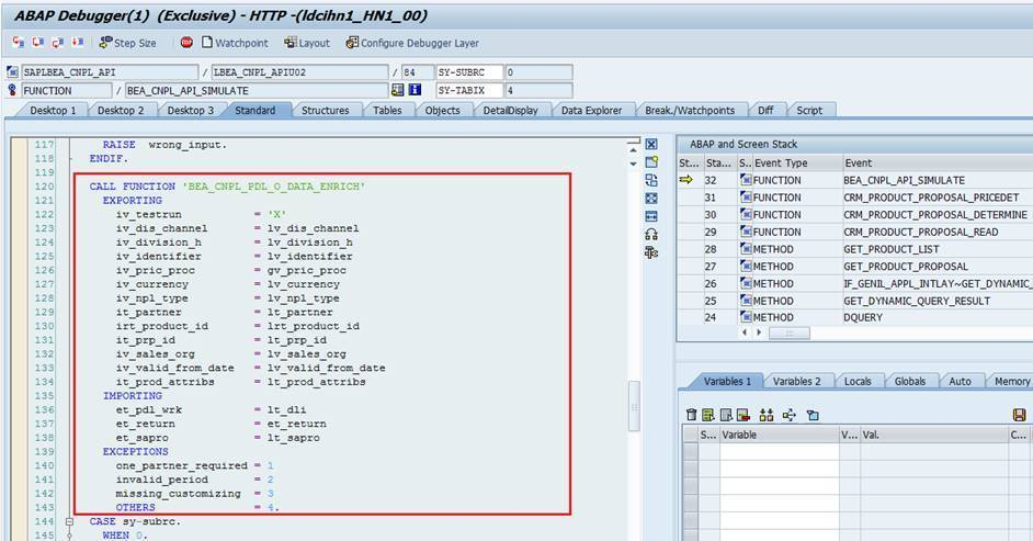 Call stack 32: In BEA_CNPL_API_SIMULATE to call funtion BEA_CNPL_PDL_O_DATA_ENRICH to get product attributes.