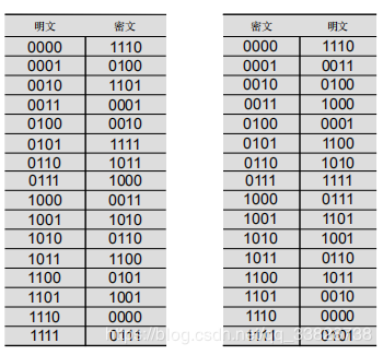 对于分组长度为4的代换结构,我们可以依据代换表给出代换以后的密文。