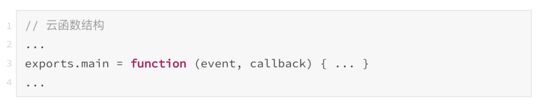 我们的 webpack 入口文件需要暴露出一个函数(签名为:function (event, callback)),打包后就可以生成一个给个跟上面一致的模块文件(在 webpack.config.js 中已经定义了)。所以我们的入口文件主要结构如下:
