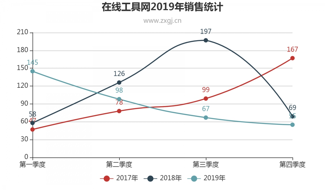 标准折线图 www.zxgj.cn/g/zhexiantu 网页上带有示例的表格,大多数情况下我是修改表格的几个数据,快速生成我要的图表。当然数据可能需要预先整合统计下,这个统计总结我还是会用Excel来做的,Excel的常用公式我还是记得几个的。