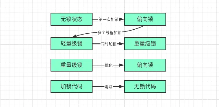 使用synchronized关键字来实现的锁是一个重量级的锁。在Java1.6以后Java对synchronized做了一定的优化。这些优化内Java的内部优化,用户不需要对代码做任何修改就可以享受到优化带来性能上的提升。