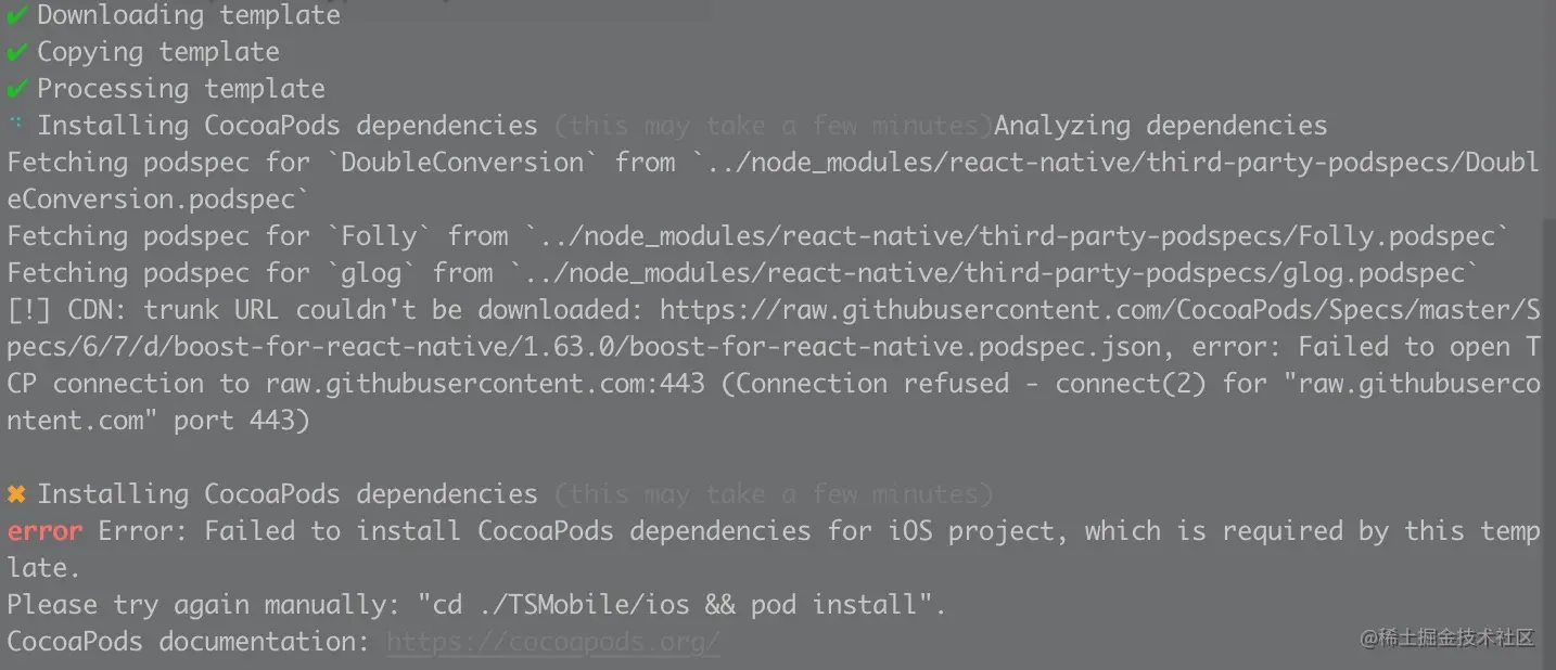 error Error: Failed to install CocoaPods dependencies for iOS project,