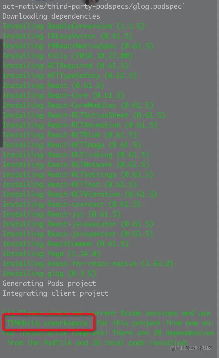 cd ./TSMobile/ios && pod install