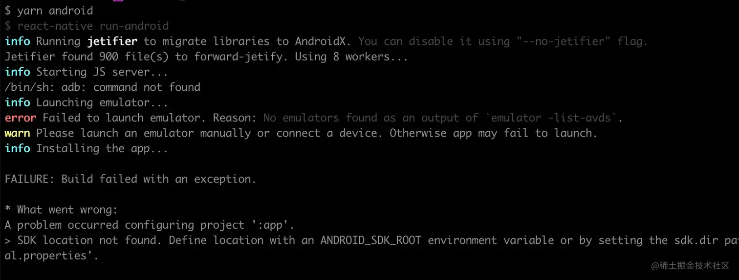 yarn android - Android Studio 的sdk配置地址和执行