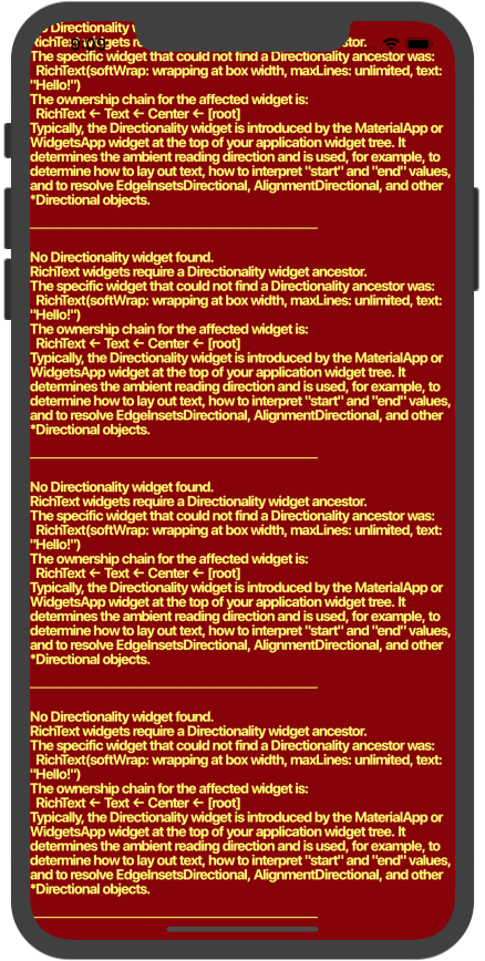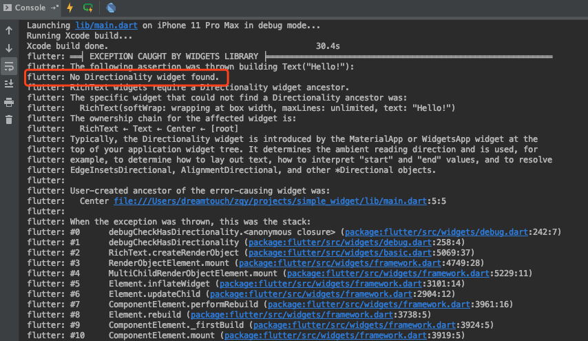 runApp函数的作用是填充一个widget并它关联到设备屏幕上,所以它的入参就是widget,在上例中就是Center这个组件。Center组件的作用是将它的子组件Text在它的内部居中。TextDirection.ltr表示文本方向是从左到右(left to right)的顺序展示,对于一些国家的语言(如阿拉伯语,希伯来语),应该需要设置成rtl,如下图: