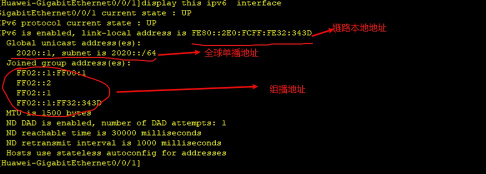 - 接口下IPv6地址的显示