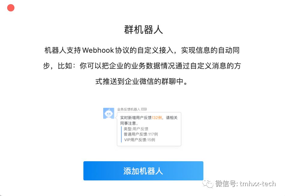 设置好之后就会出现机器人的webhook地址,同时也会有使用说明