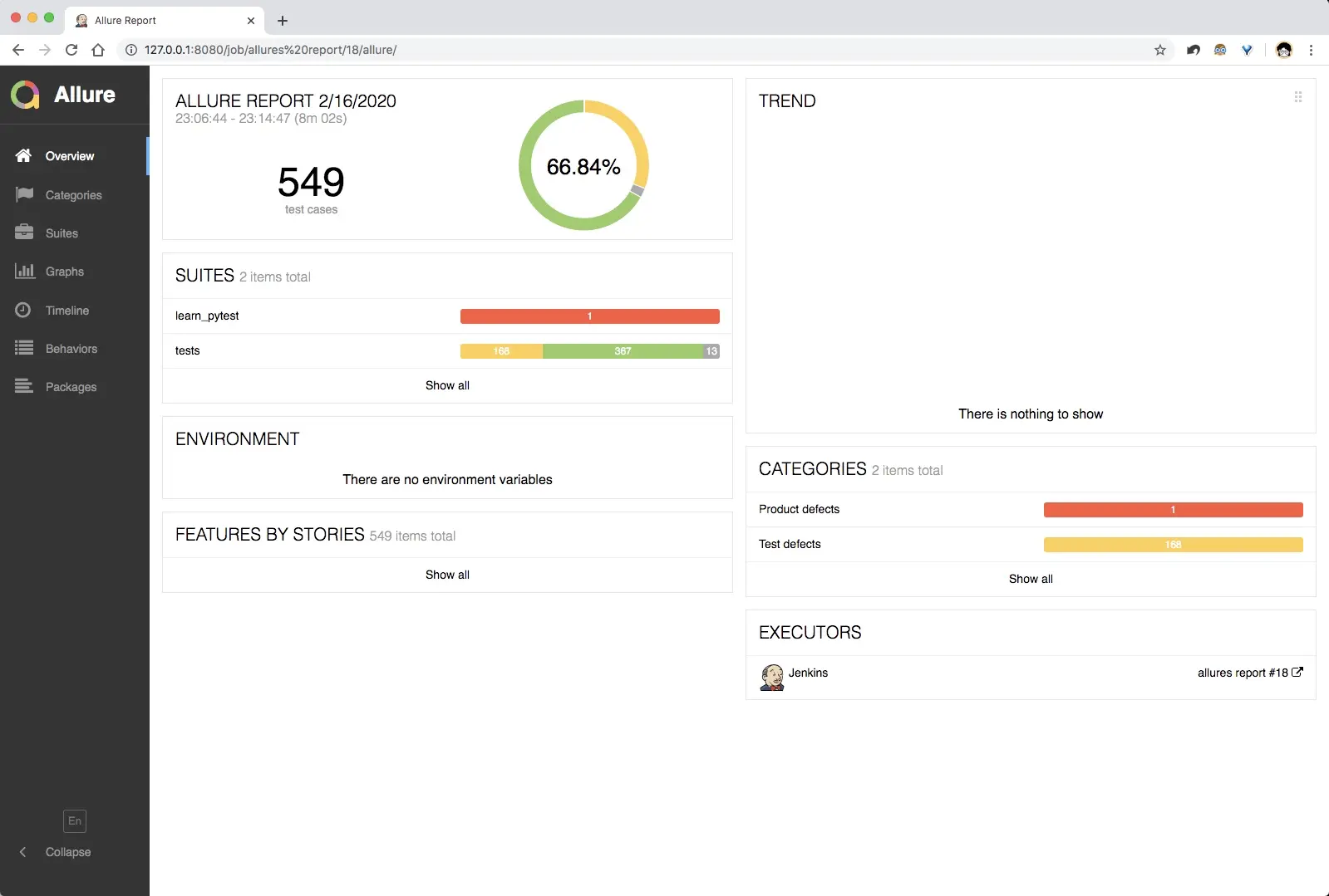获得JSON文件数据后,可以通过allure generate命令来生成HTML测试报告界面。