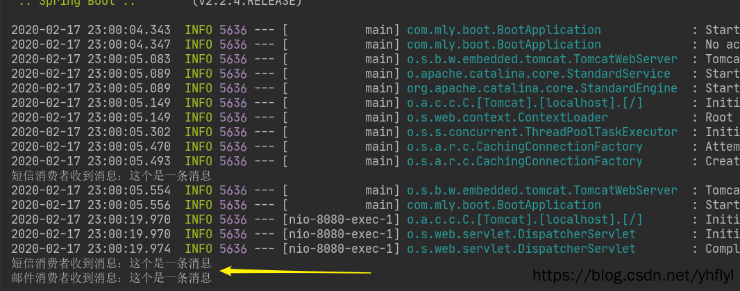 amqpTemplate.convertAndSend(EXCHANGE_NAME, "", "这个是一条消息");