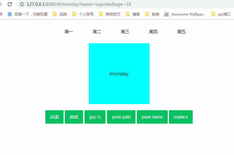 onclick="router.replace({name: 'monday', query: {name: 'suporka', age: '18'}});"