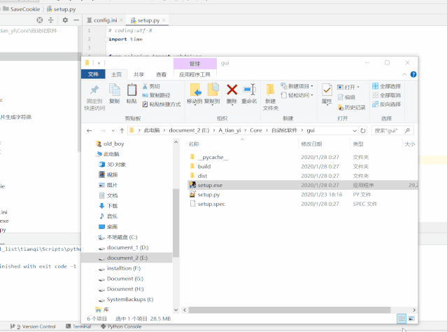 7、执行 pyinstaller -F -wsetup.py 多加-w以后,就不会显示黑洞洞的控制台了,这里就不做演示啦!