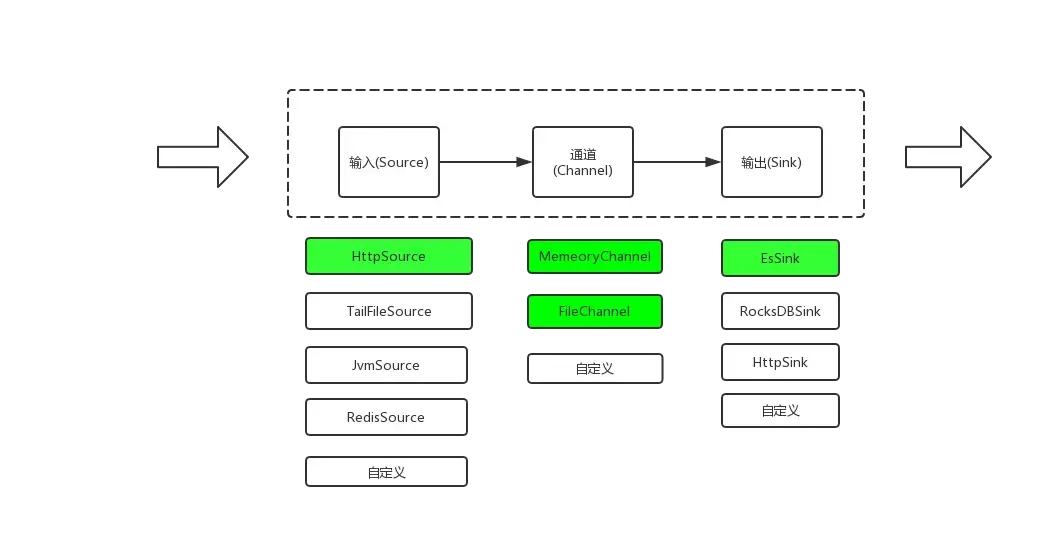 - 易扩展:内置常用Source、Sink,Channel开发者可灵活自定义扩展Source、Channel、Sink,也可自定义序列化方式。