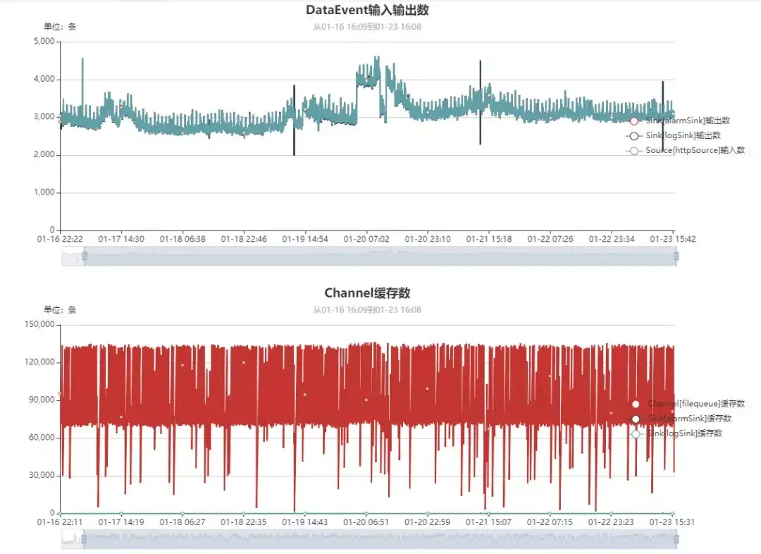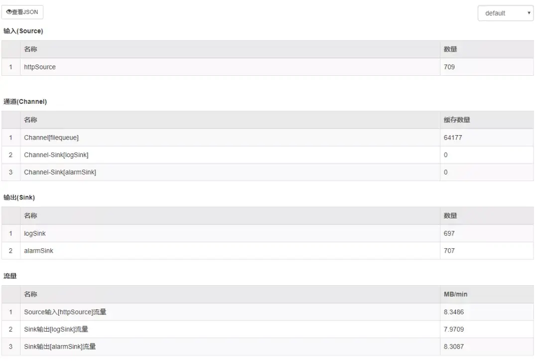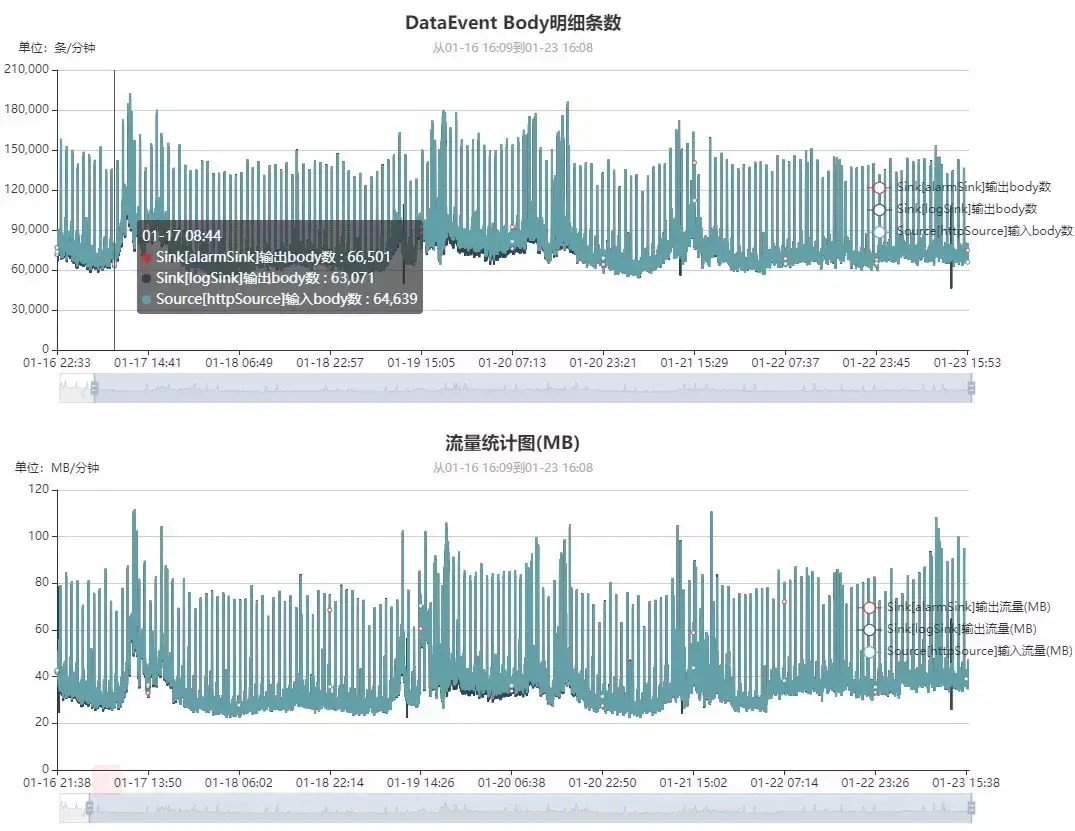 ESA DataFlow内置SQLite数据库,按分钟维度实时采集7天内的数据,并提供内置简单UI界面,当然DataFlow也提供Prometheus监控接口,方便集成到内部监控系统: