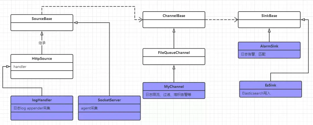 以日志采集为例,基于DataFlow实现的类图如下: