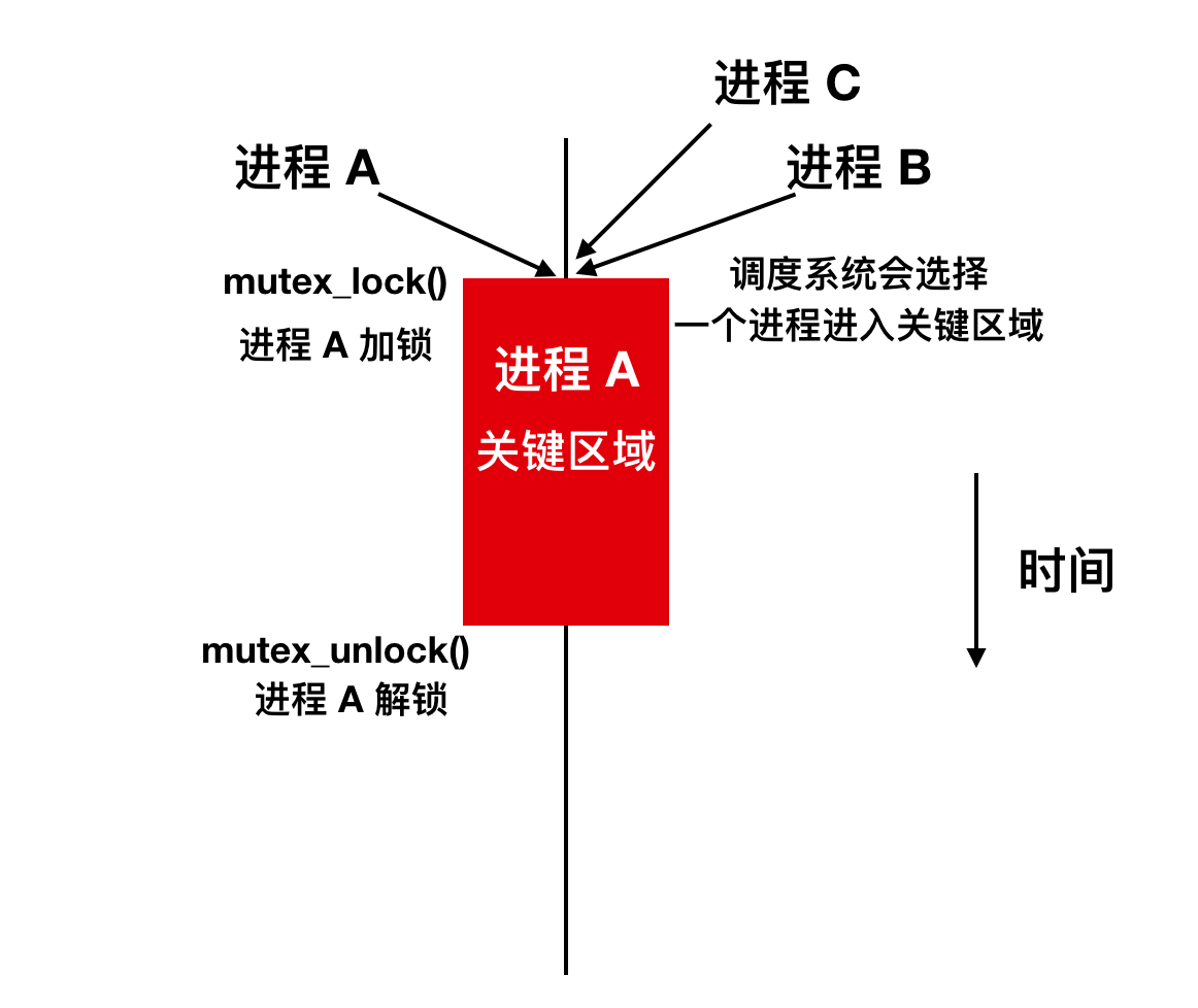 不仅共享资源会造成竞态条件,事实上共享文件、共享内存也会造成竞态条件、那么该如何避免呢?或许一句话可以概括说明:禁止一个或多个进程在同一时刻对共享资源(包括共享内存、共享文件等)进行读写。换句话说,我们需要一种 互斥(mutual exclusion) 条件,这也就是说,如果一个进程在某种方式下使用共享变量和文件的话,除该进程之外的其他进程就禁止做这种事(访问统一资源)。上面问题的纠结点在于,在进程 A 对共享变量的使用未结束之前进程 B 就使用它。在任何操作系统中,为了实现互斥操作而选用适当的原语是一个主要的设计问题,接下来我们会着重探讨一下。