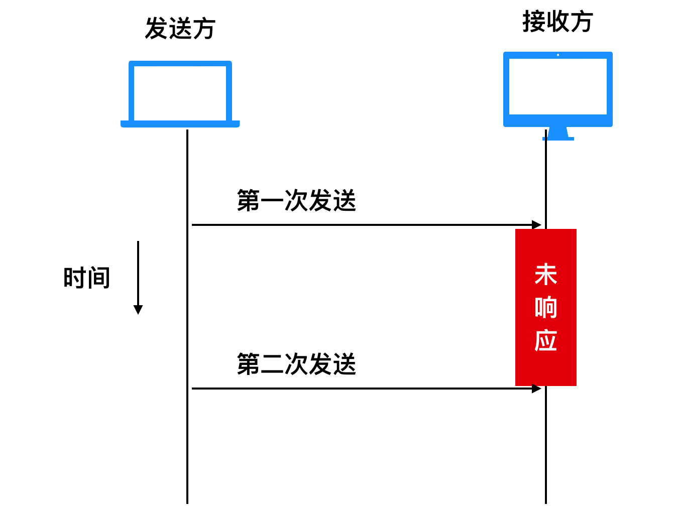 现在考虑消息本身被正确接收,而返回给发送着的确认消息丢失的情况。发送者将重发消息,这样接受者将收到两次相同的消息。