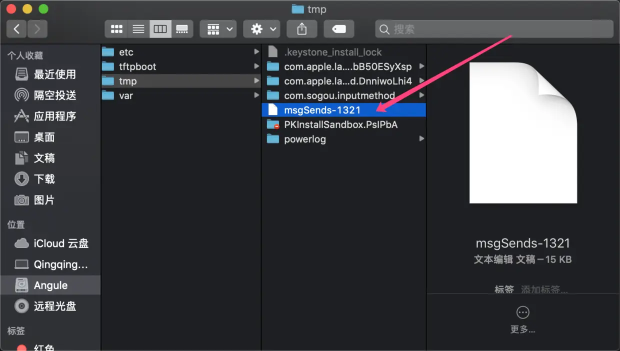 通过查看logMessageSend源码我们可以发现输出的log在/tmp路径下。