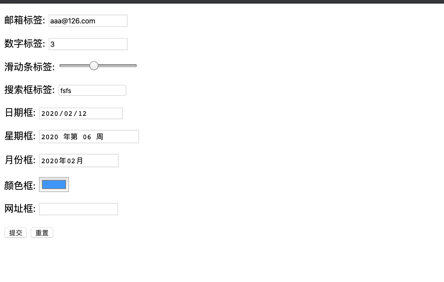 <p>滑动条标签: <input type="range"></p>