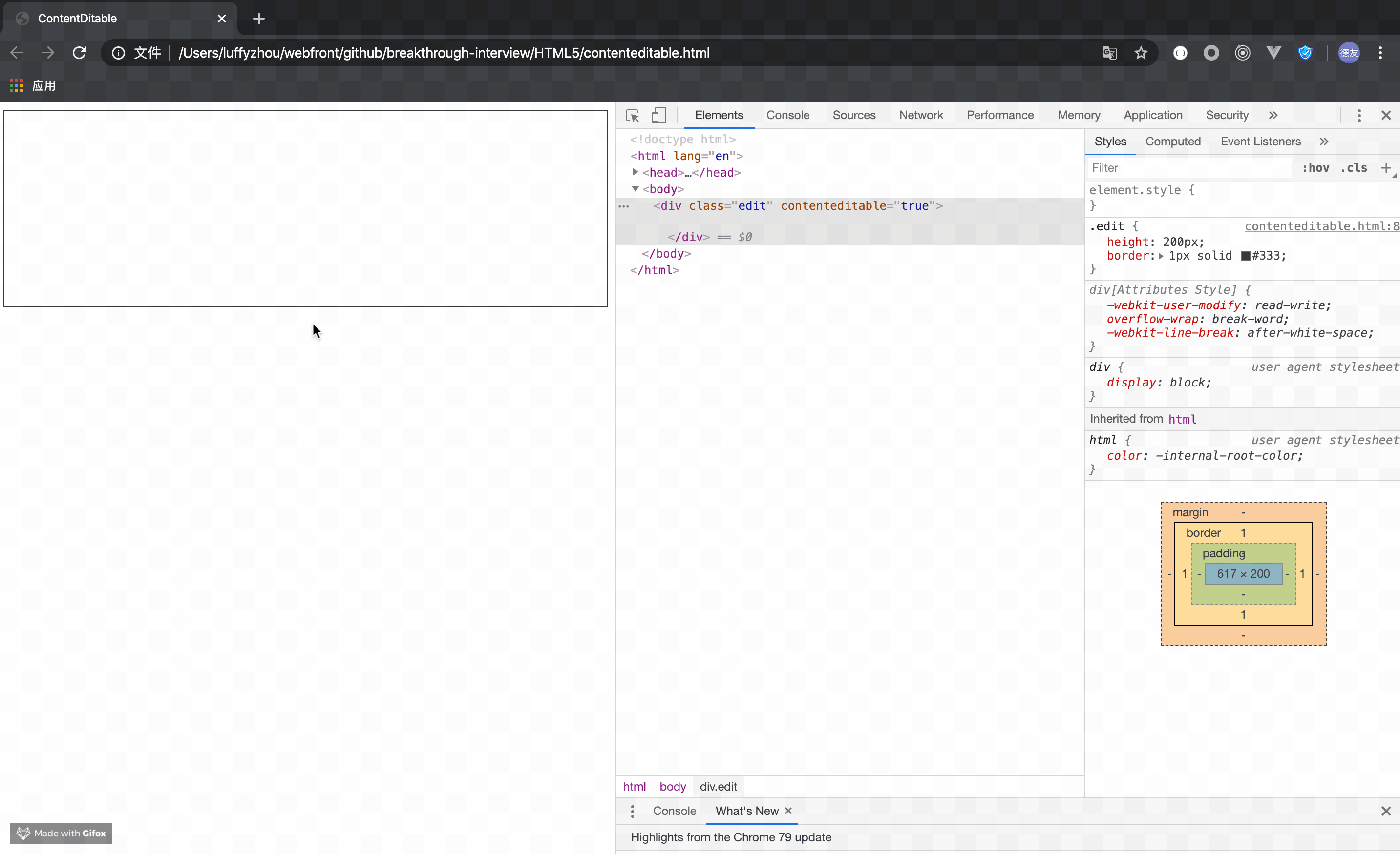 这个属性牛逼的不行,也是所有主流浏览器都支持的,并且它被广泛的应用,比如很多网页编辑器,内容切换编辑状态等等,都可以通过这个属性来实现。