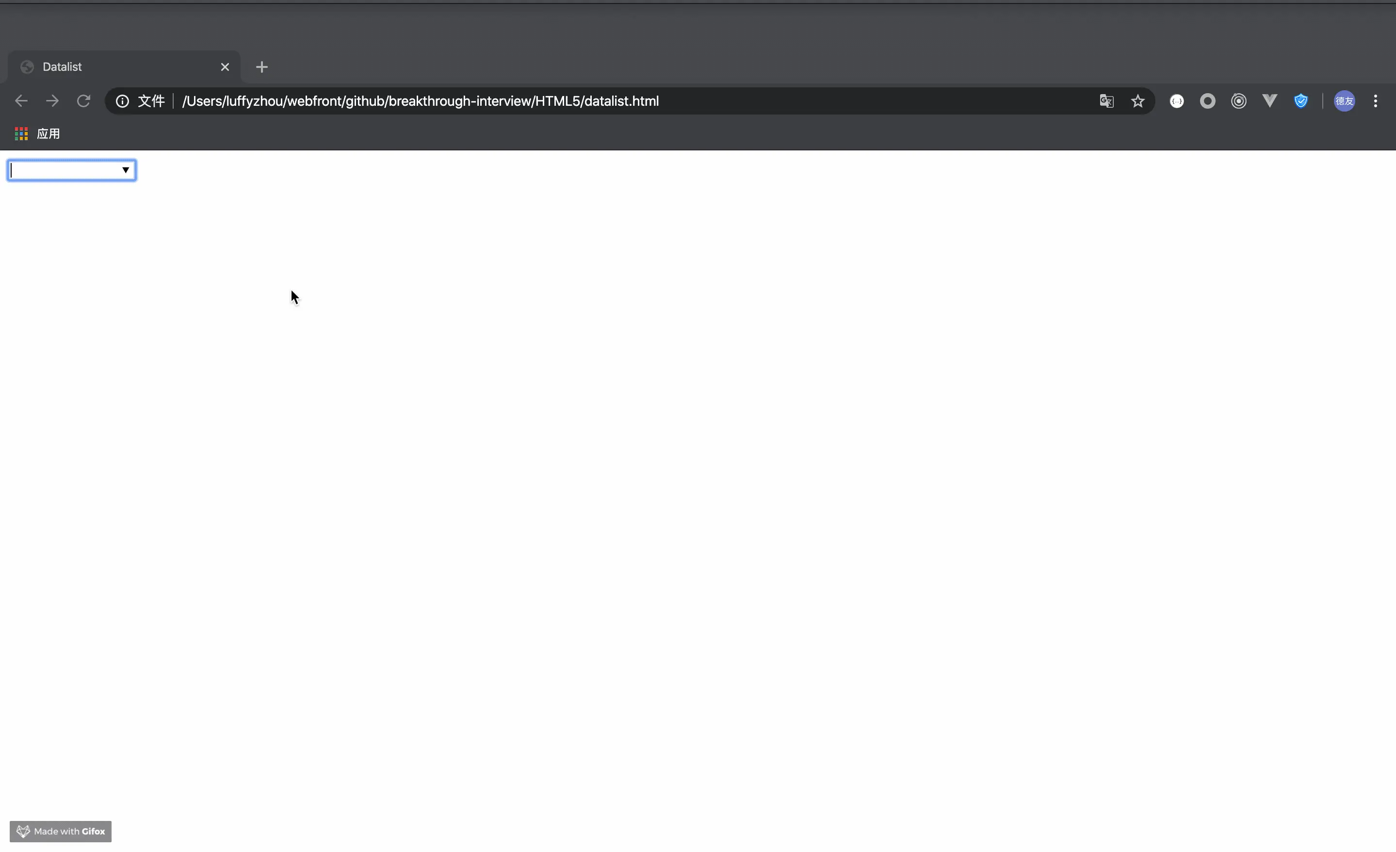 上面代码表示,此标签需要与input使用,然后呈现下拉框与选项,实际效果如下图所示: