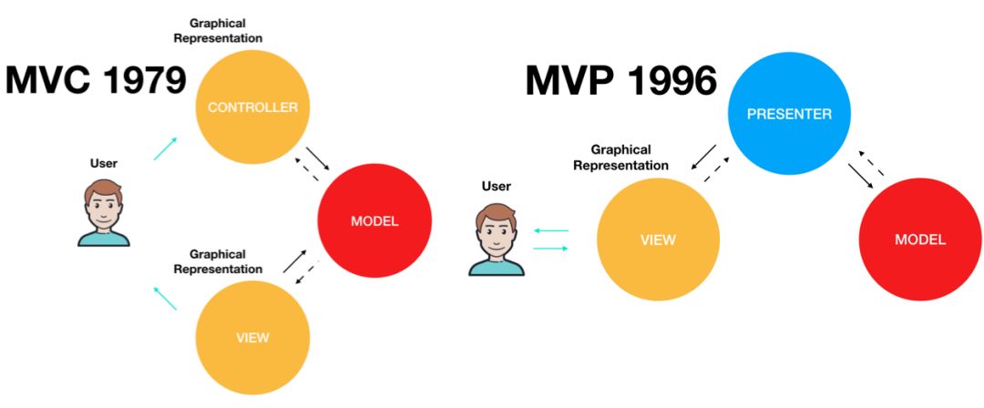 MVP 是其中最奇怪的一个。MVP 由 Mike Potel 于 1996 年推出,是对 MVC 的修改。在有关 MVP 的工作中,Potel 建议无需将小部件划分为“视图”和“控制器”。现代操作系统的用户界面已经在 View 类中提供了大多数 Controller 功能,因此 Controller 似乎有点多余。因此,删除了 Controller 并创建了一个新类 Presenter 作为 View 和 Model 之间的粘合剂。