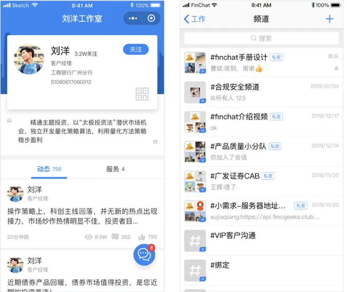 经过多年的发展,Finchat这一整套面向金融行业的合规通讯协同平台,已经积累了不少行业用户,银行方面有诸如工商银行(广东分行),机构方面有中国基金业协会、证通云等,券商方面有诸如华泰证券、广发证券、长城证券、国盛证券等用户,保险行业有的鼎诚人寿等。这些客户的使用,是因为能满足业务需要,也是对Finchat产品质量的认可。