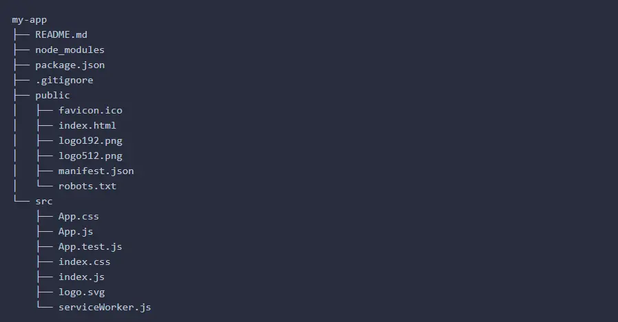 运行创建应用的命令后,生成初始项目结构并安装依赖项。