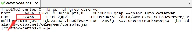 - 打开命令控制台,执行命令:ps -ef | grep o2server