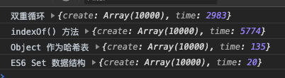 ES6 Set > Object 作为哈希表 > 双重 for 循环 > indexOf() 方法