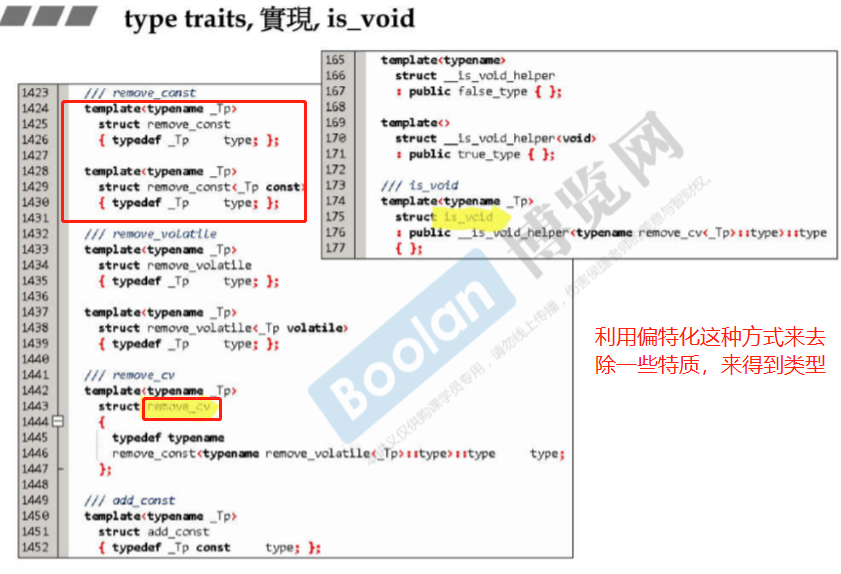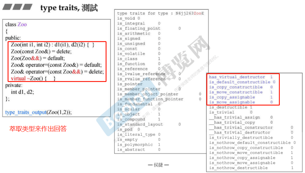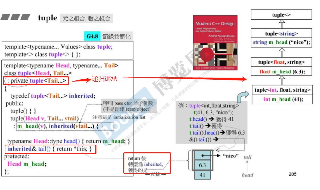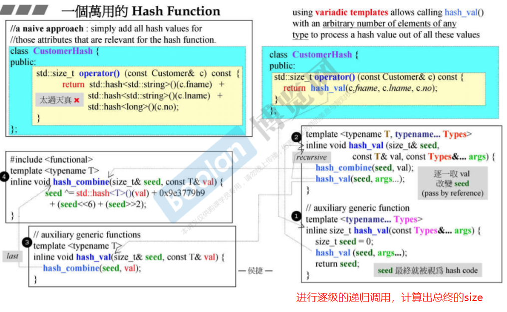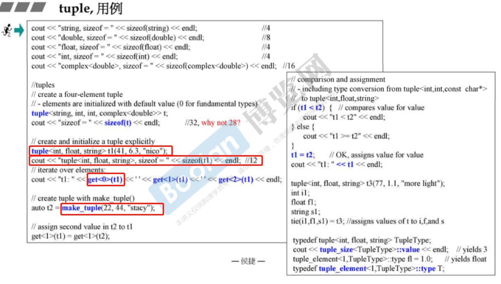 STL学习(八) cecelia 2020-02-18 368 阅读1分钟 一边看侯捷老师(STL源码分析)课程,一边记录下来,仅是给自己当笔记看的。 勿在浮沙筑高台 1.一个万用的hash function 2.元组tuple Tuple是C++11之后的一个类模板,是固定大小的异类值汇集,或者说是通用化的pair。 3.traits 4.moveable