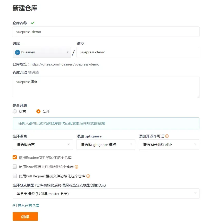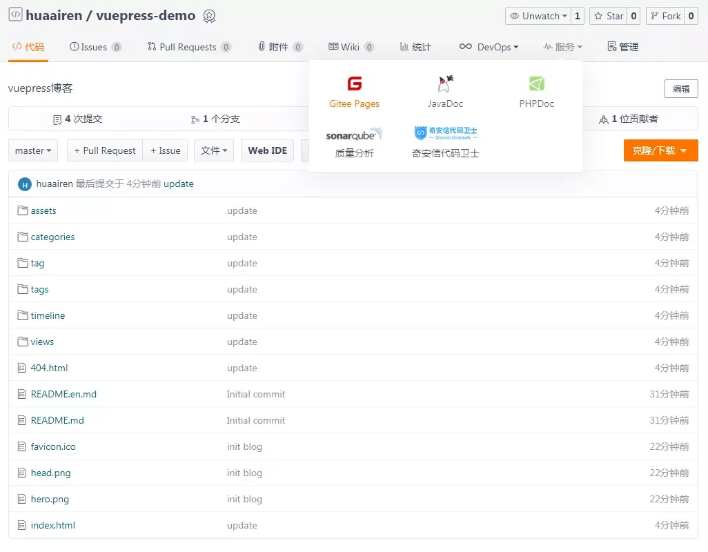 git clone https://gitee.com/huaairen/vuepress-demo.git #克隆空项目到本地