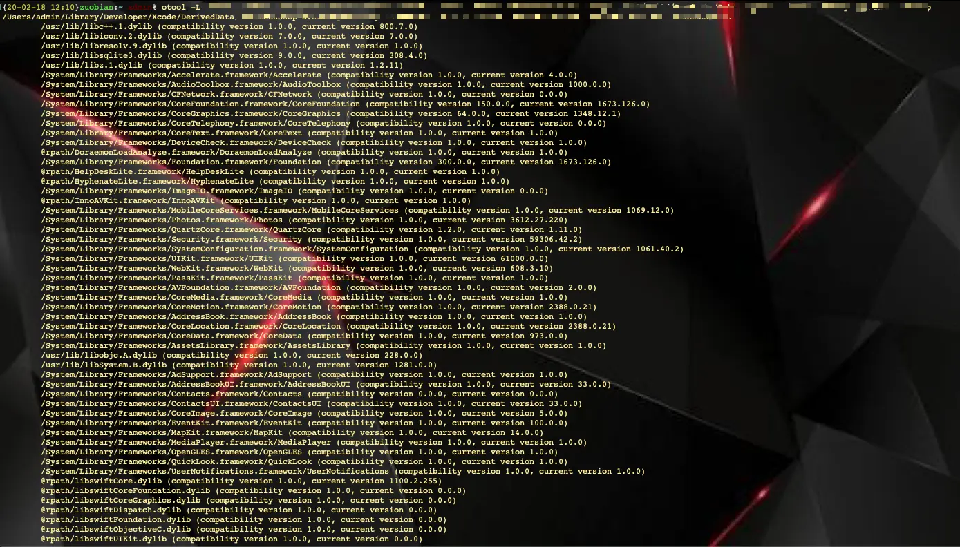 输入命令:otool -L XXXX