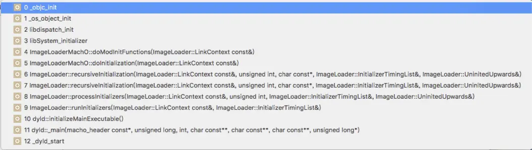 1、 dyld开始将程序二进制文件初始化
