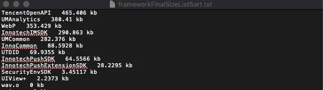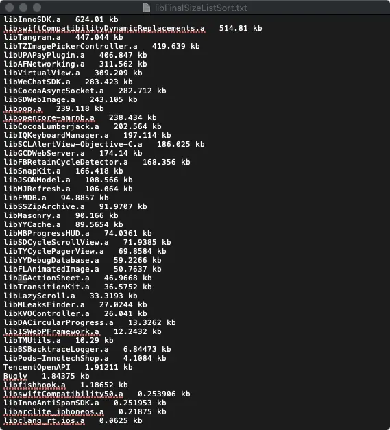 统计了各个库所占的size(安装包size优化的脚本),基本上一个公共库越大,类越多,启动时在pre-main阶段所需的时间也越多。