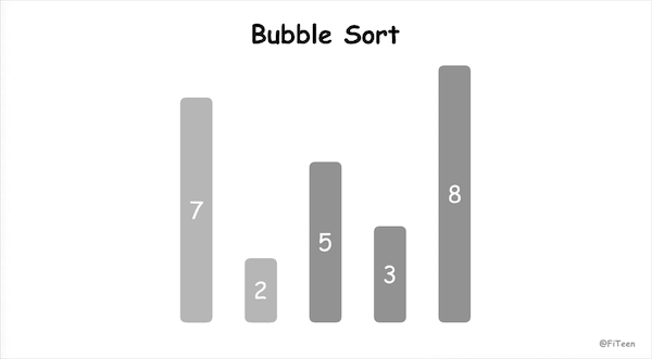 - 从第一组相邻元素比较到最后一组相邻元素,这一步结束最后一个元素必然是参与比较的元素中最大的元素;