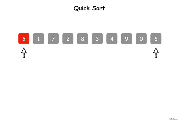 - 重复步骤2,直到 i = j,最后将相遇点指向的值与基准交换位置。