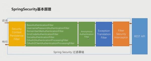 Spring Security的登录验证流程核心就是过滤器链。当一个请求到达时按照过滤器链的顺序依次进行处理,通过所有过滤器链的验证,就可以访问API接口了。