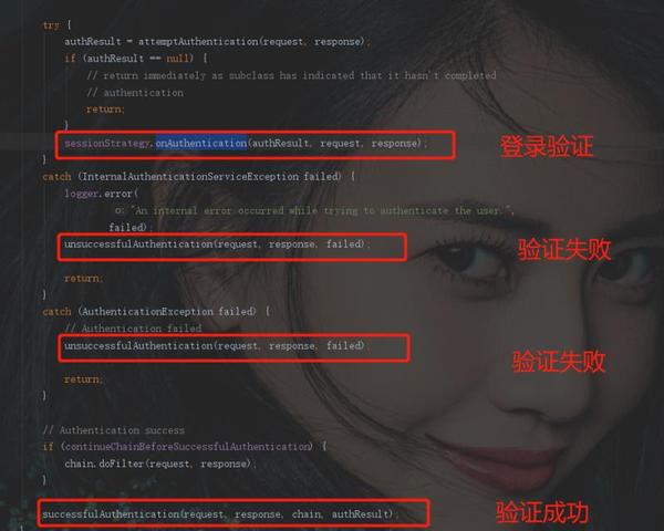 UsernamePasswordAuthenticationFilter继承自抽象类AbstractAuthenticationProcessingFilter,该抽象类定义了验证成功与验证失败的处理方法。