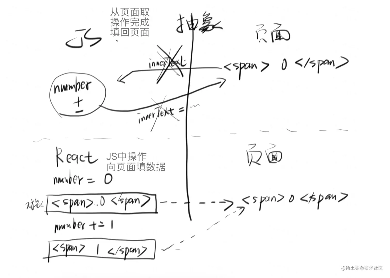 - 虚拟DOM:表示DOM节点的对象,非真实的DOM,如上代码