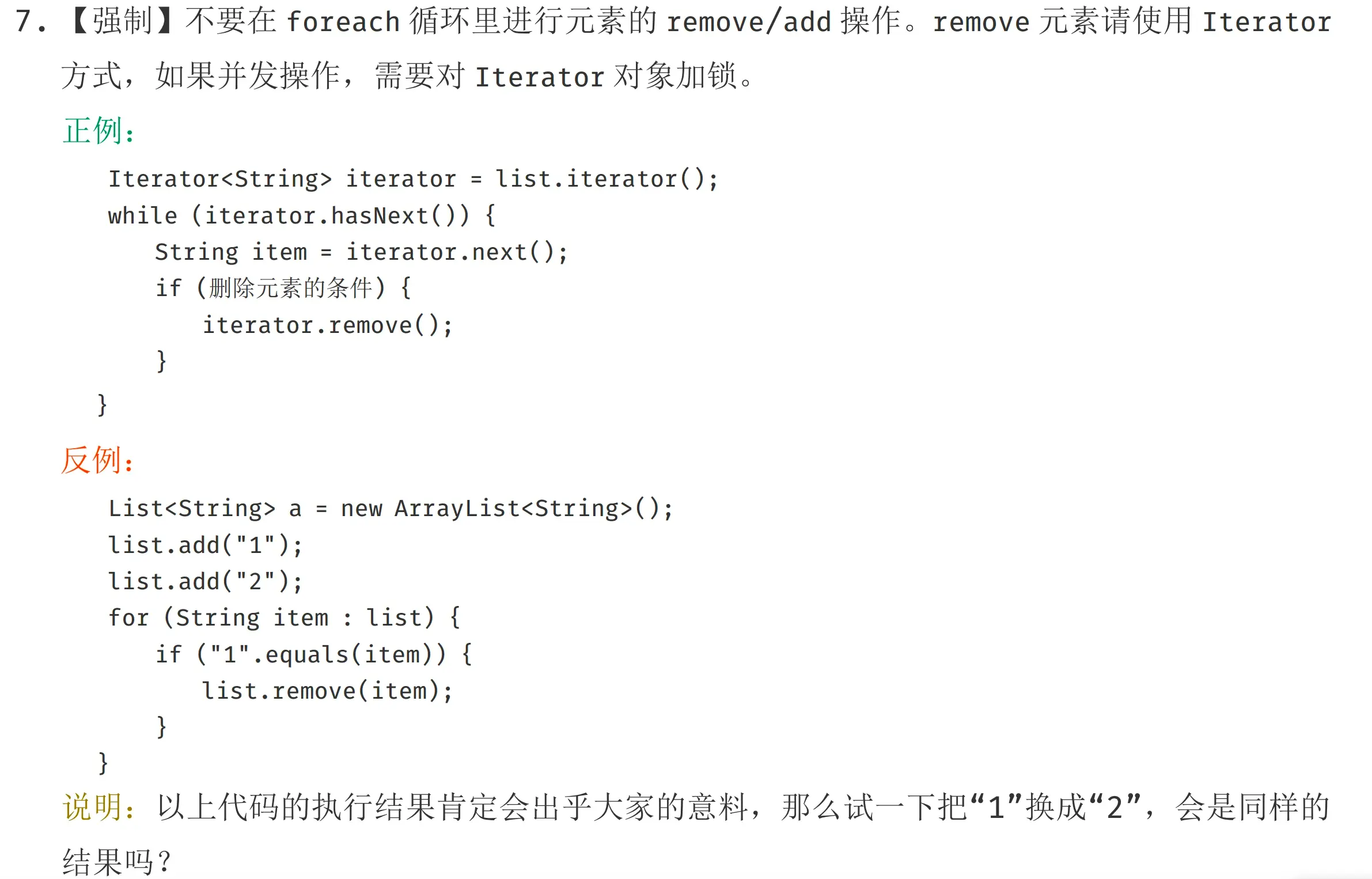 另:阿里巴巴开发手册规定:禁止在 foreach 循环里进行元素的 remove/add 操作