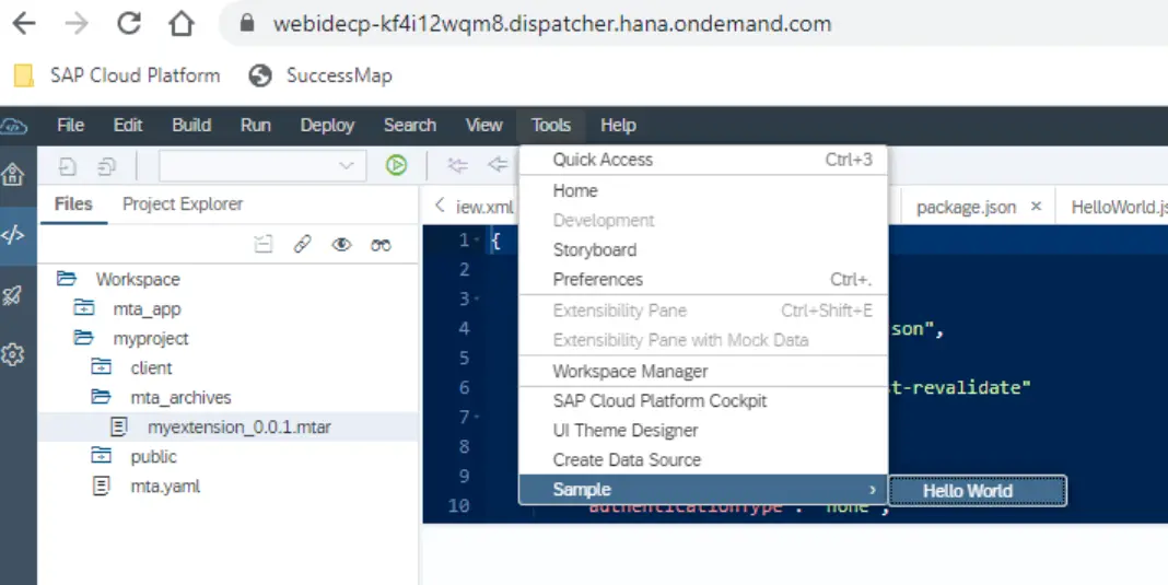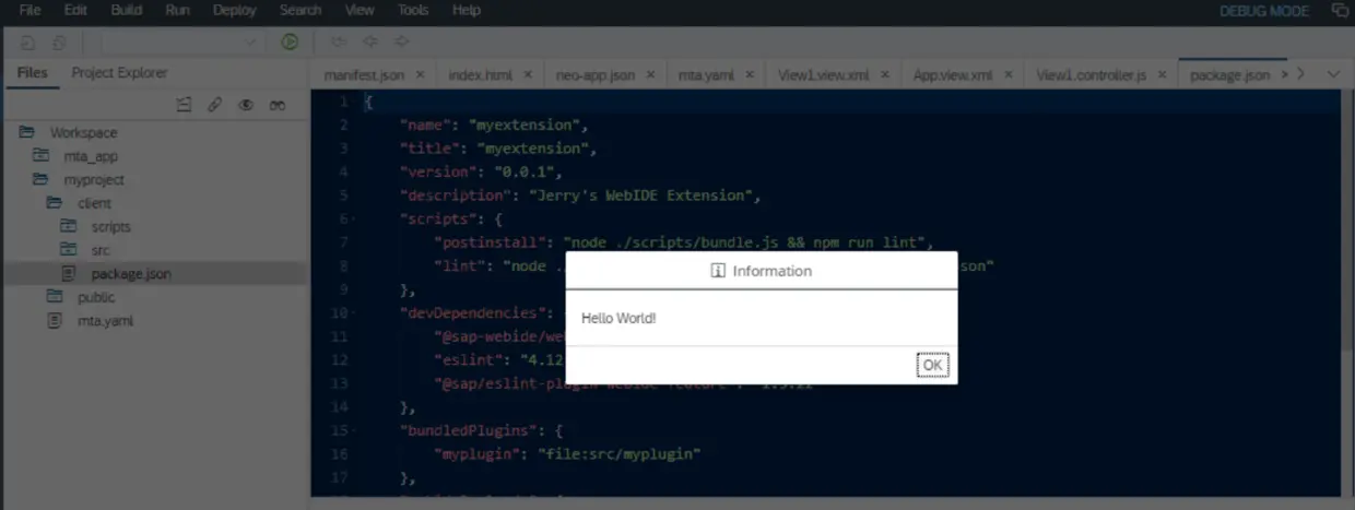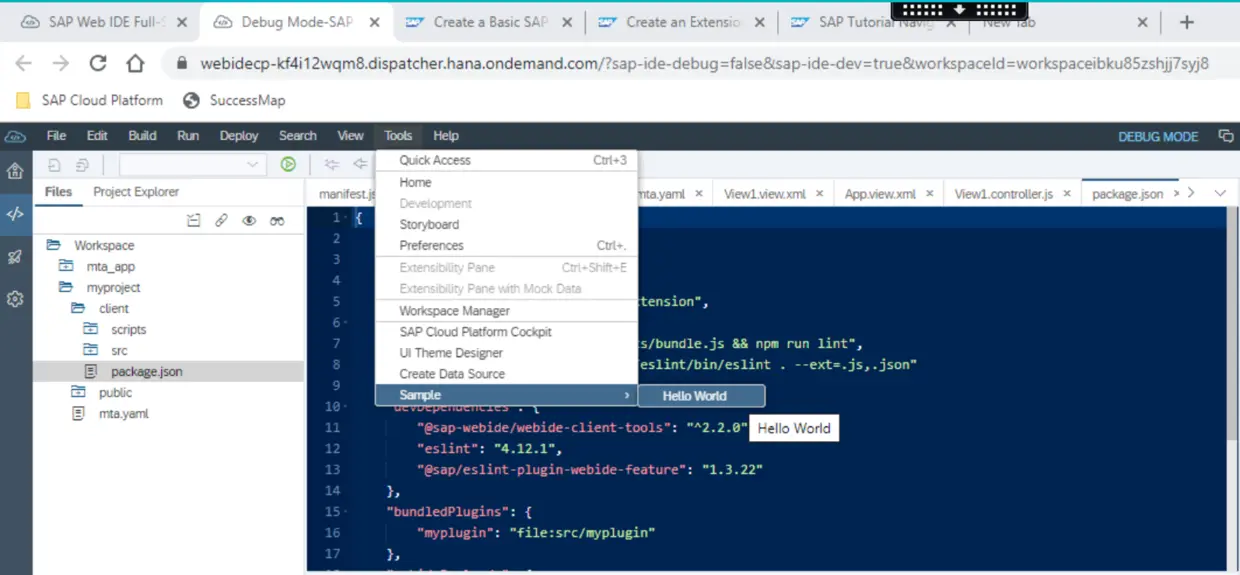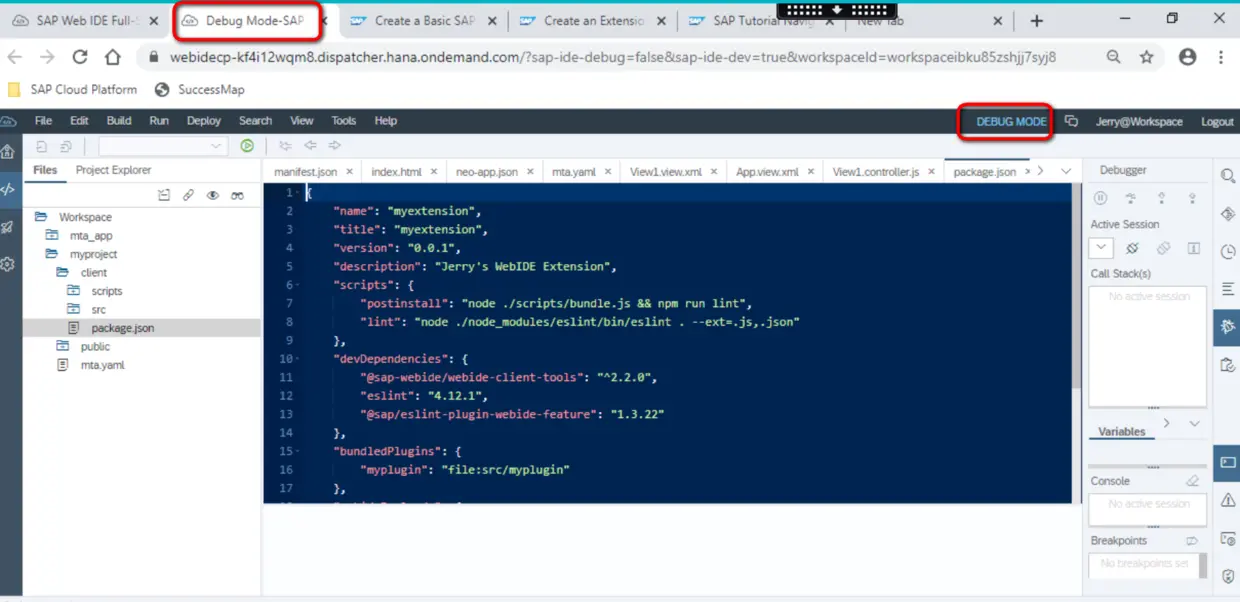 Run As SAP WebIDE Extension菜单会以调试模式打开一个新的SAP WebIDE窗口: