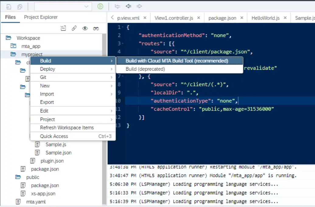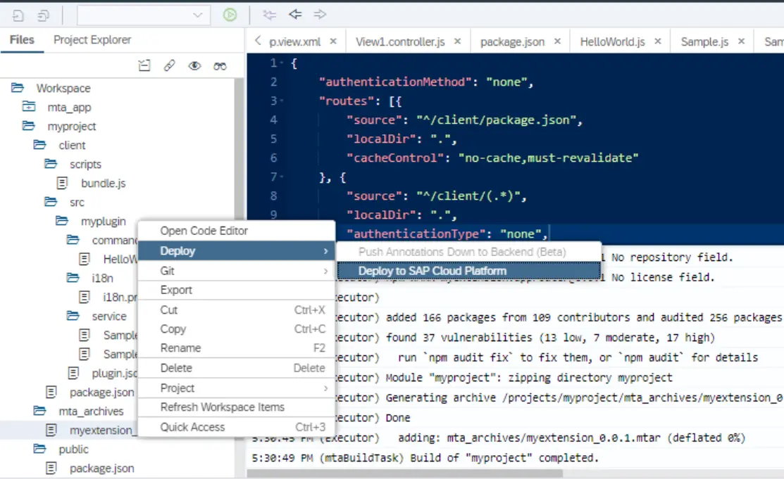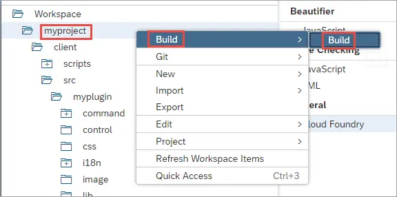 下面将这个extension部署到SAP Cloud Platform上。先在右键菜单里选择Build: