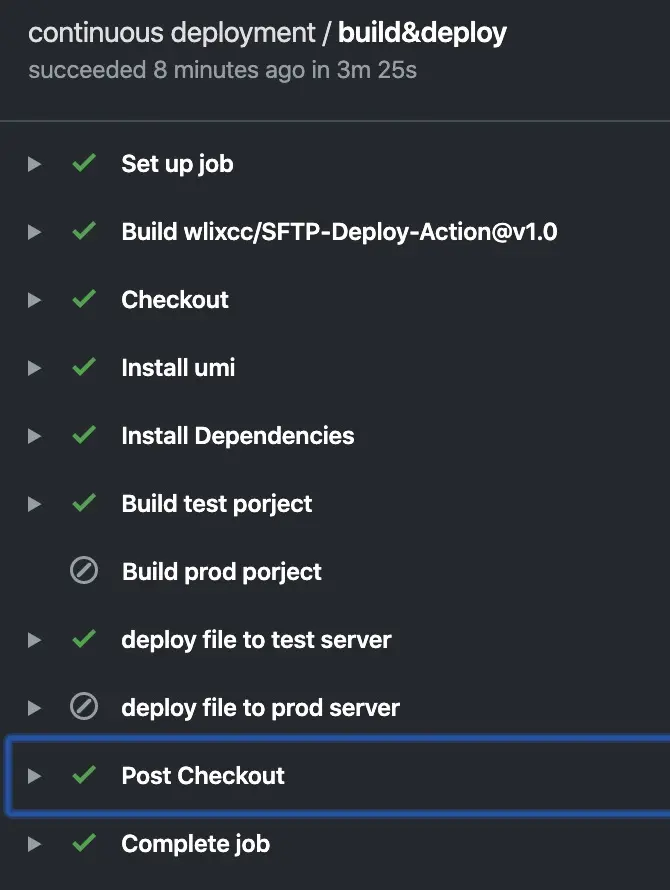 remote_path: '/var/www/app' #服务器部署路径这里可以看到只执行了test流程